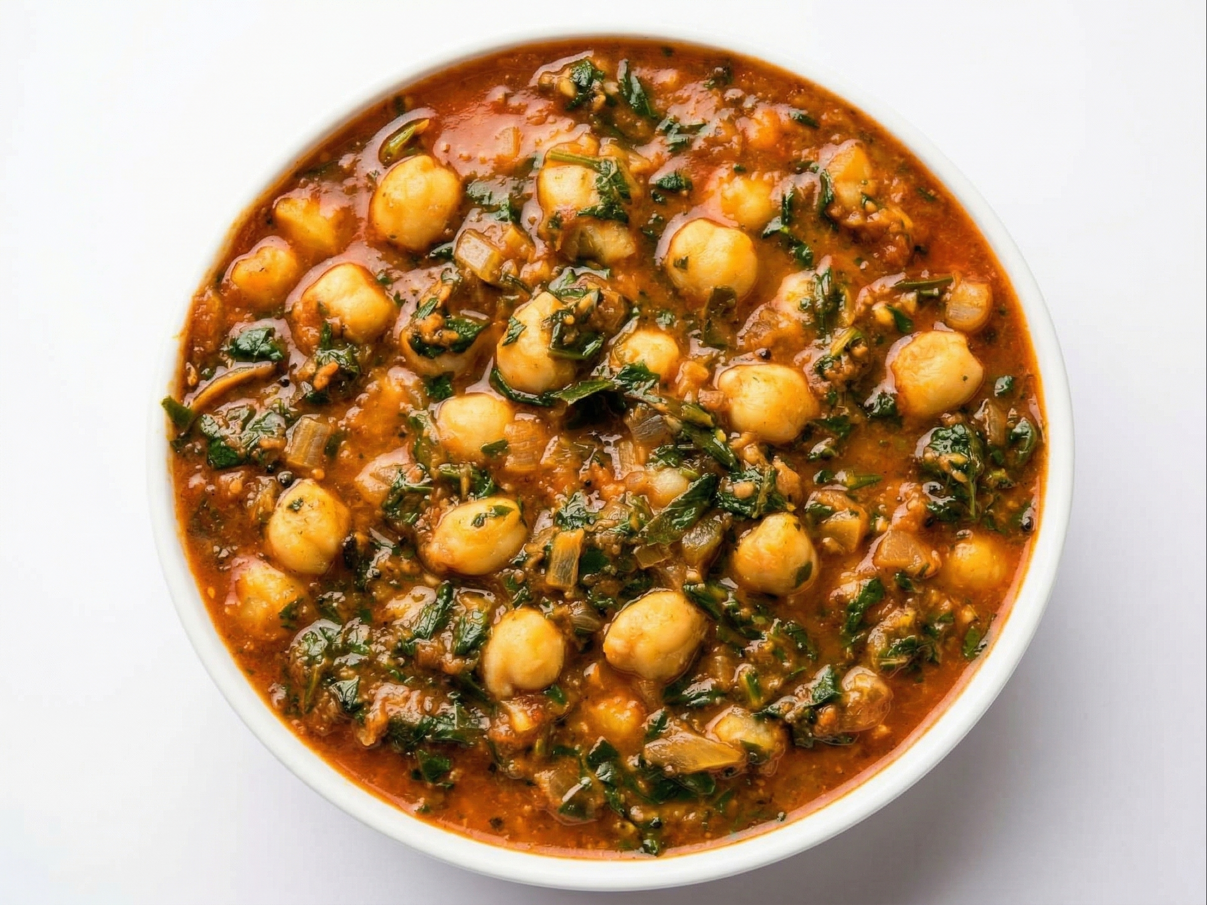 A classic north indian curry made with tender chickpeas simmered in a tangy, spiced tomato gravy, bursting with rich flavors.