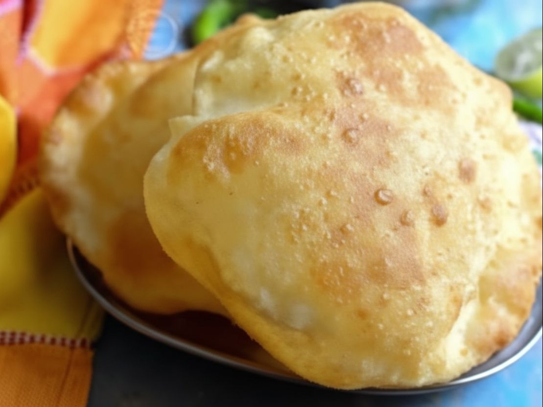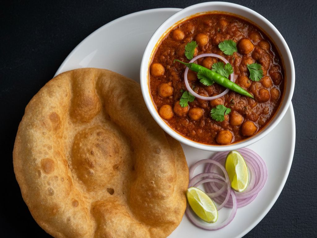 A beloved north indian dish featuring fluffy, golden-fried bread served with tangy and spiced chickpea curry, a hearty and flavorful delight.