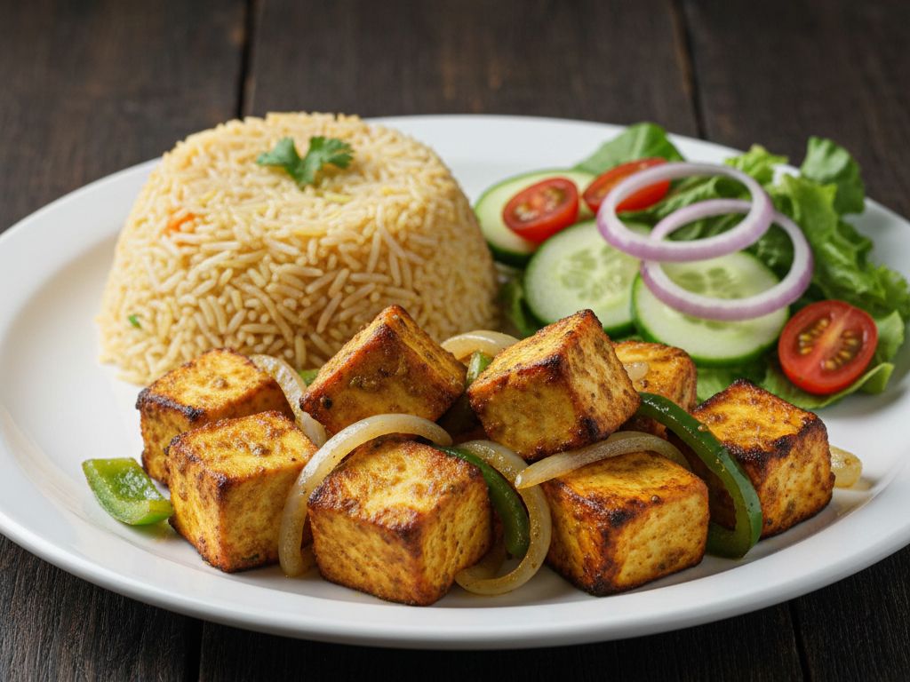 Indian cheese cooked with a special masala and sliced onions, tomatoes, ginger, and bell peppers.