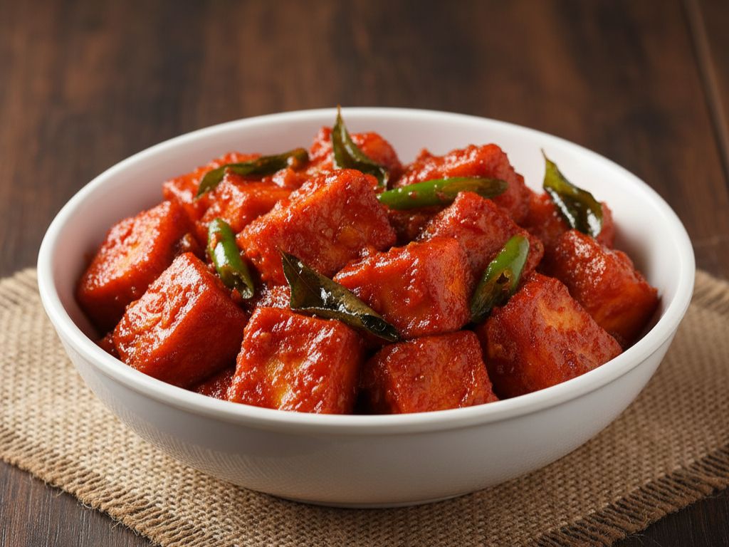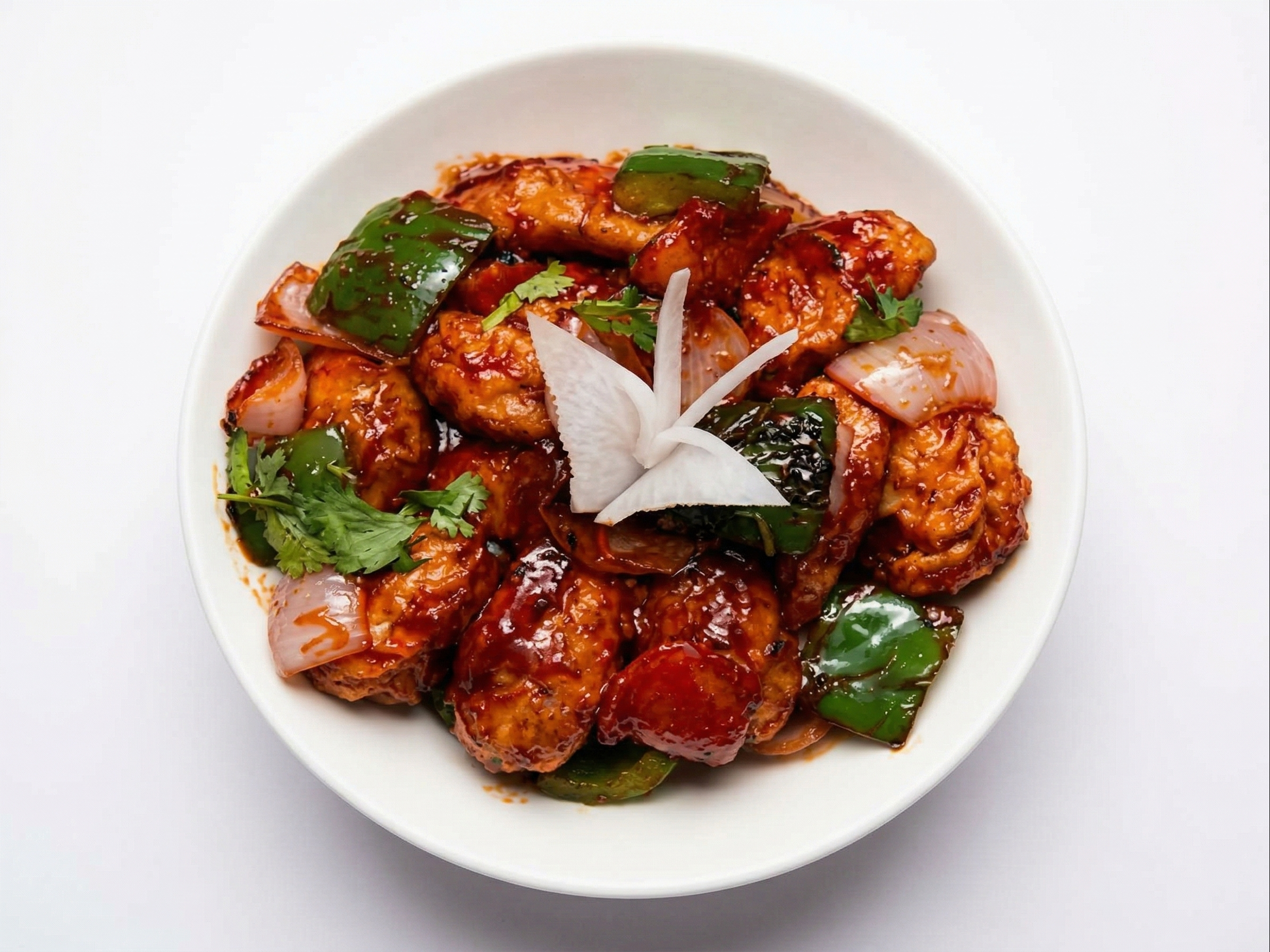 Cheese cubes sauteed with onions, peppers, hot chili and soy sauce.
