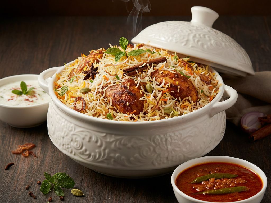 A Hyderabadi delicacy, slow-cooked chicken marinated in rich spices and yogurt, sealed with aromatic flavors.