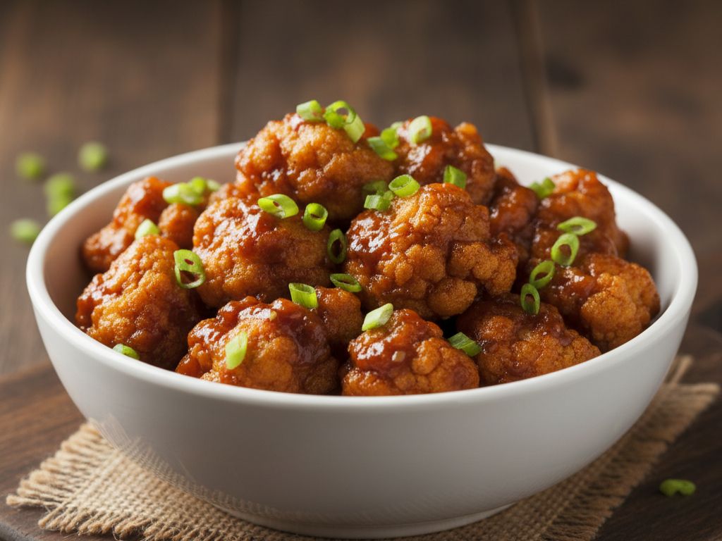 Cauliflower marinated in corn batter spices, deep fried and tossed with spices & sweet soy sauce.