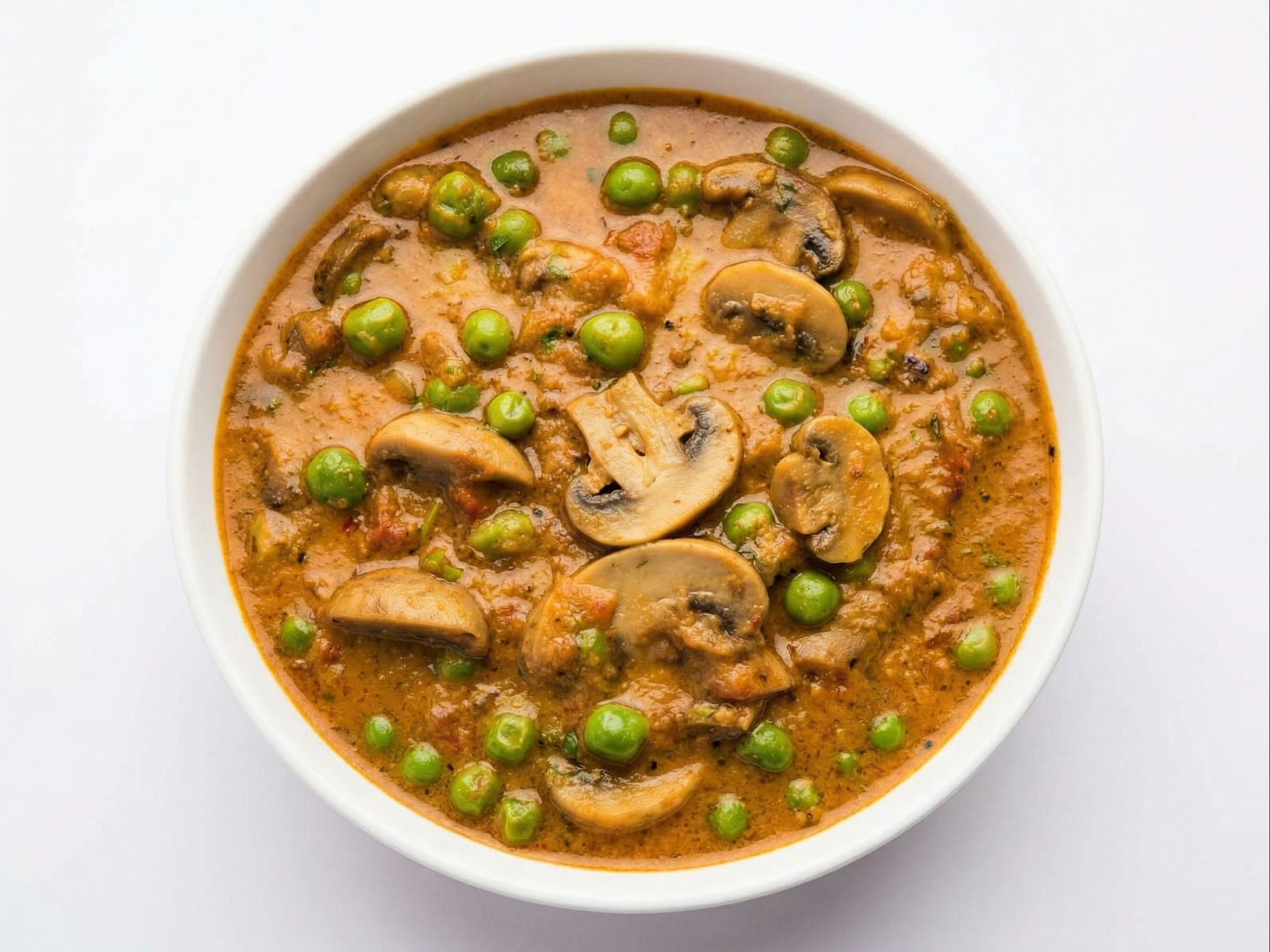 A flavorful combination of chicken and mushrooms cooked in a creamy, spiced gravy.