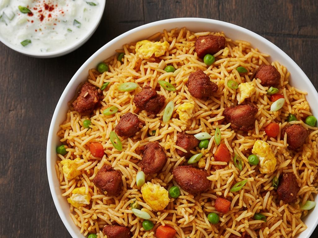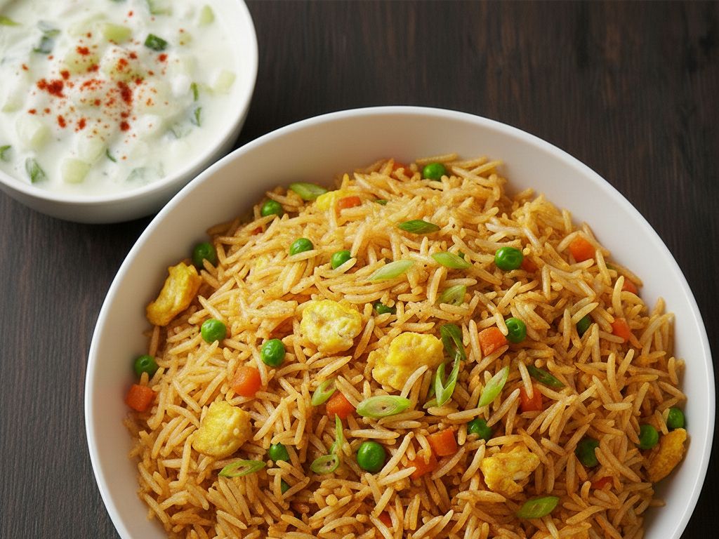 Steamed long grain rice & eggs tossed with Indo-Chinese spices.