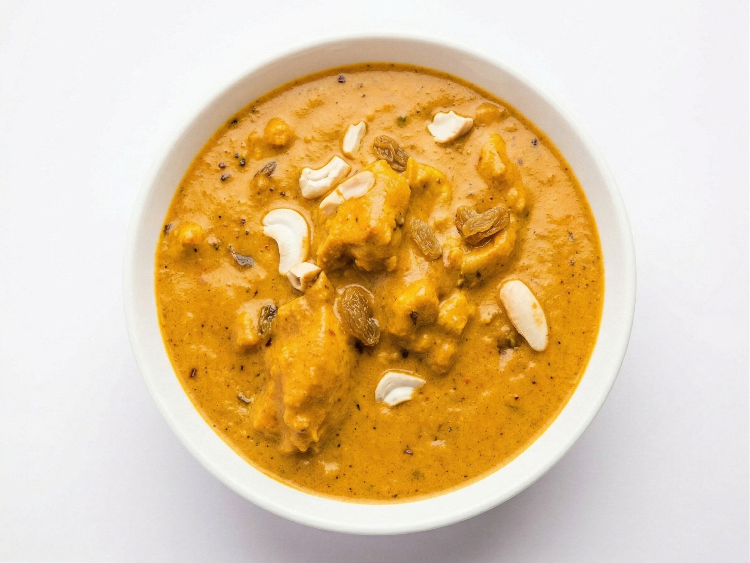 A luxurious mughlai dish with shrimp simmered in a creamy, rich almond and cashew gravy.