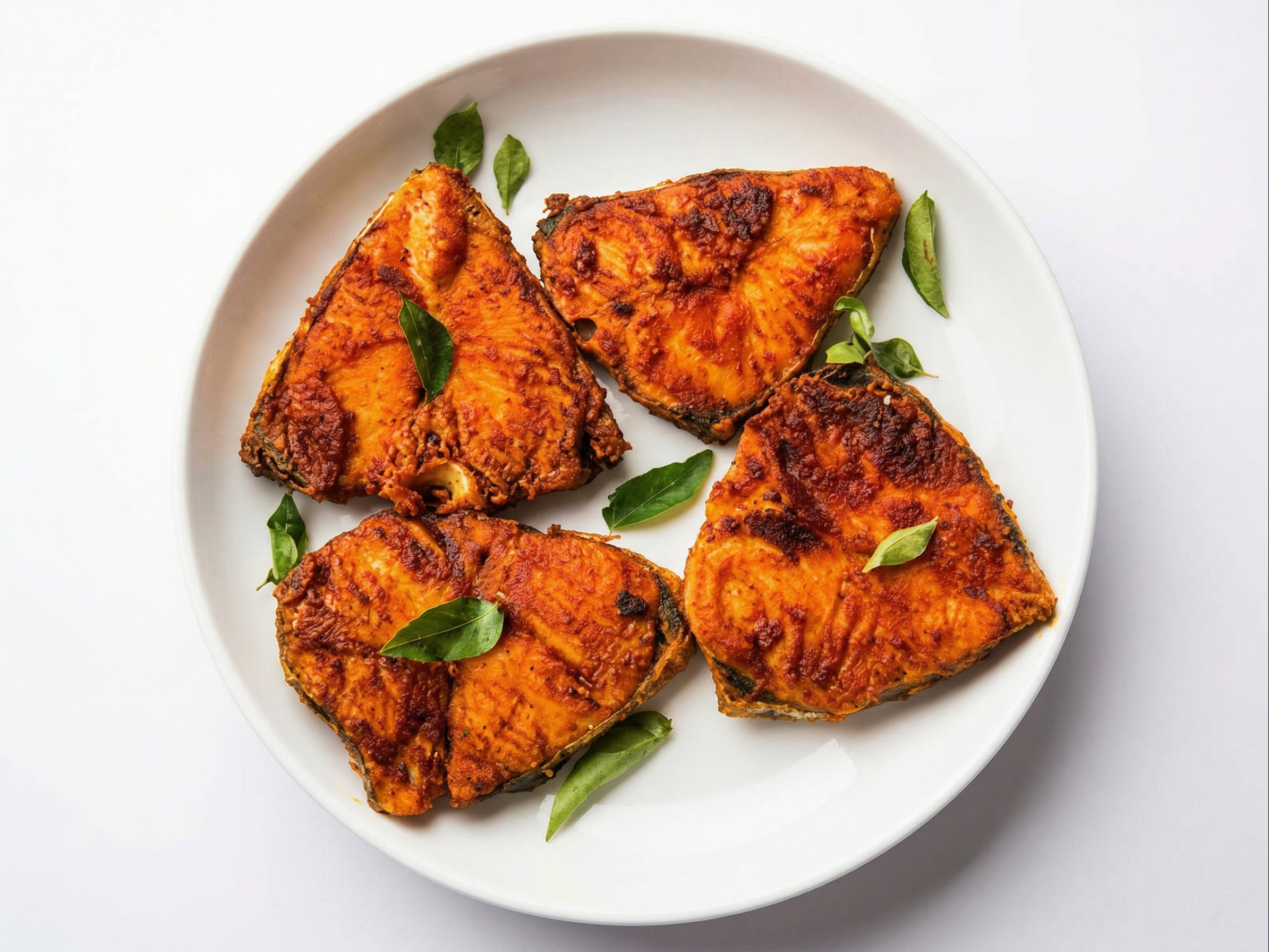 Fresh fish cooked in homemade special masala with onions, bell peppers, ginger, and tomatoes.