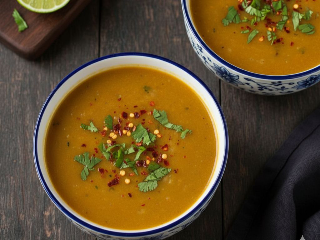 A light and nourishing lentil soup, gently spiced and garnished with fresh herbs.