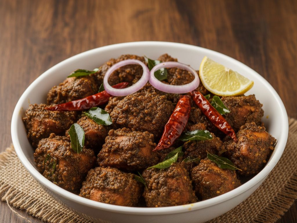 A spicy south indian curry featuring tender goat meat cooked in a rich blend of chettinadu spices and coconut.