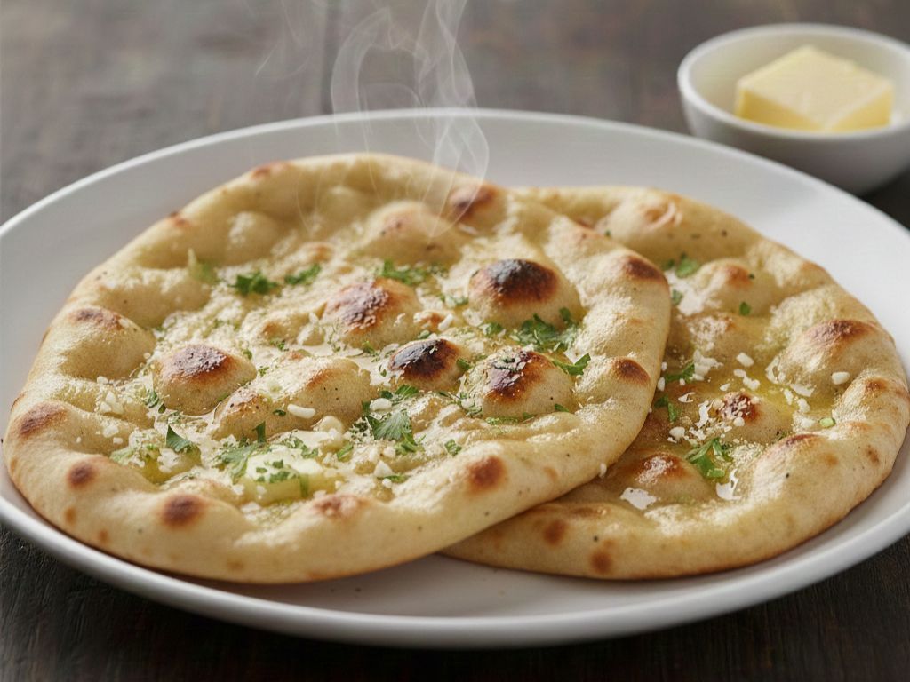 A traditional unleavened, hand-tossed bread freshly baked in a tandoor clay oven.
